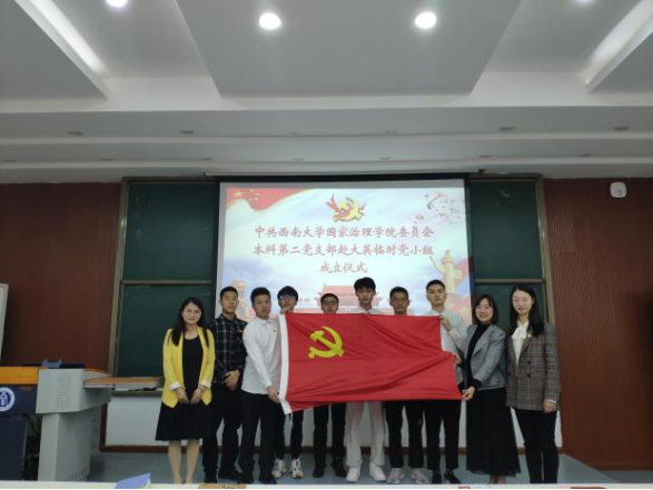 发布时间: 2021-11-01 11:38:03 已阅读:为了充分发挥党支部的战斗堡垒作用,发挥党员在专业实习工作中的先锋模范作用,学院本科第二党支部于5月6日上午在3308教室举行赴大英临时党小组成立仪式。学院党委副书记王晖、本科第二党支部书记肖颜、2018级辅导员曾琪芮以及即将奔赴大英参加专业实习的7名学生党员、入党积极分子参加成立仪式。