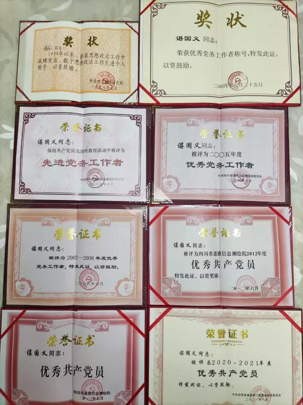 谌国义获得的荣誉证书